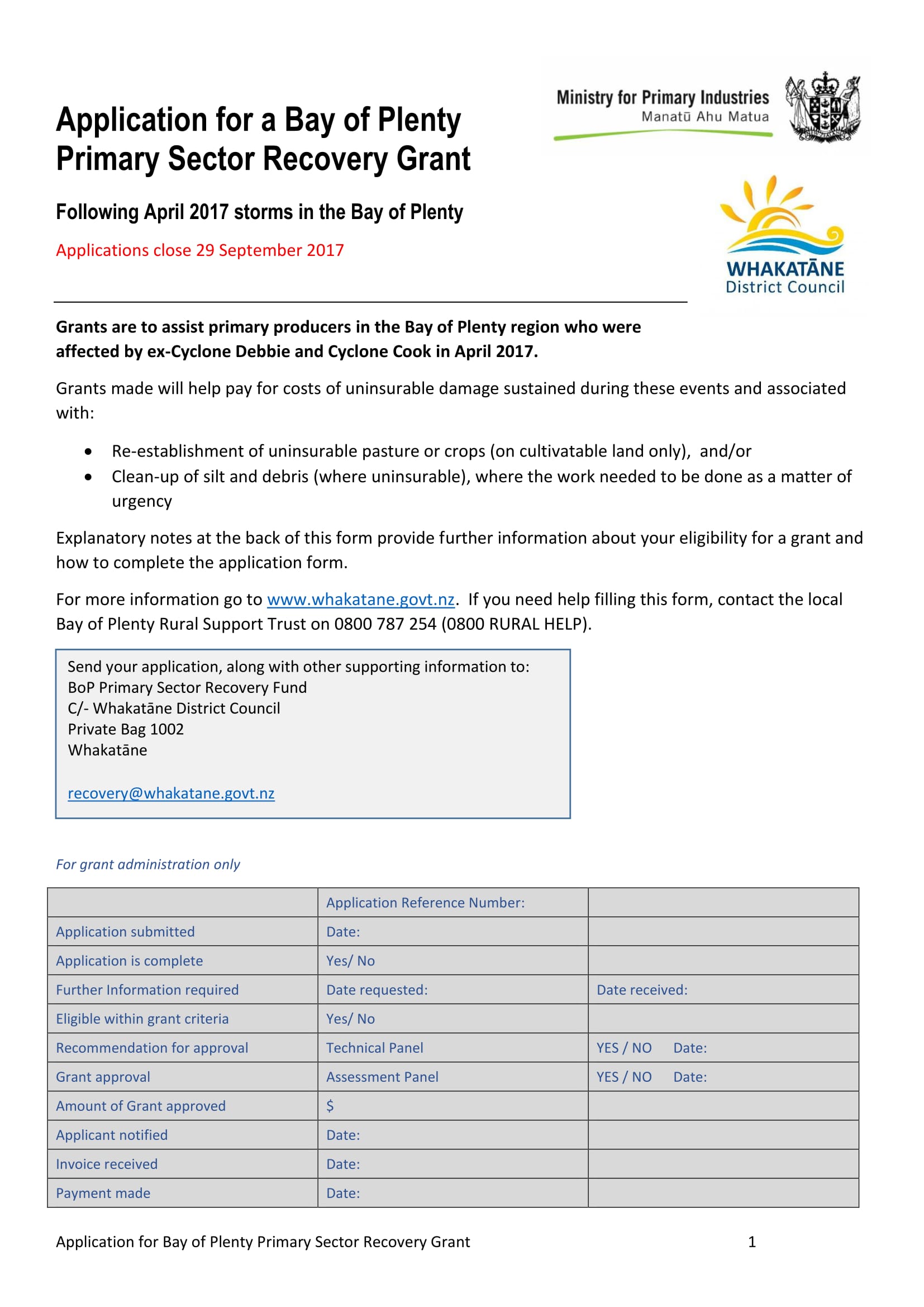 Click here to download the application form or click on the image to the right. The application form contains information about eligibility and the application process, which goes through Whakatane District Council.